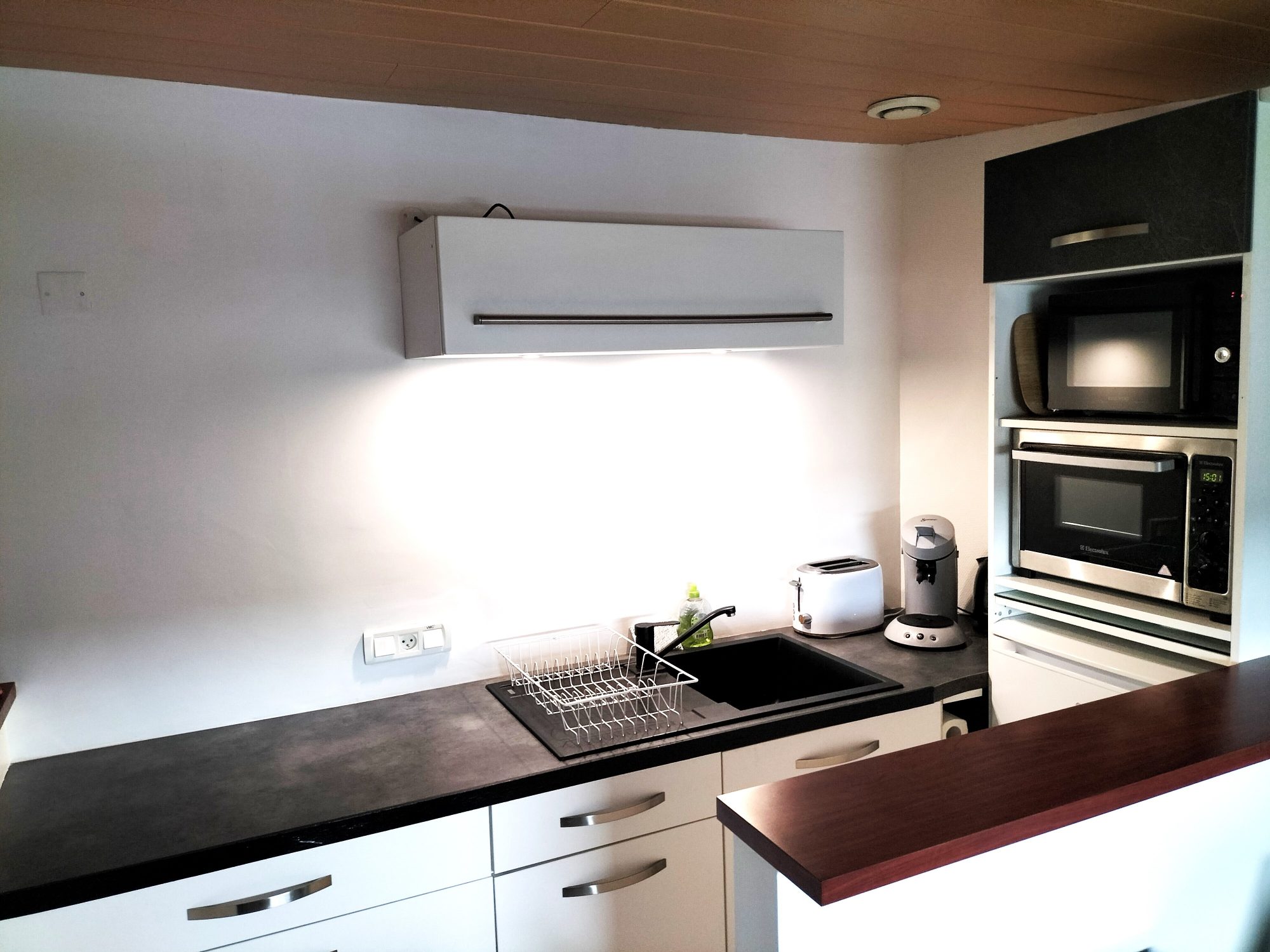 Luminosité agréable et ce dés l'entrée qui dessert une pièce de vie agréable avec sa cuisine équipée et aménagée, un espace chambre ainsi qu'une salle d’eau avec WC. Le plus: un espace de rangement pratique.