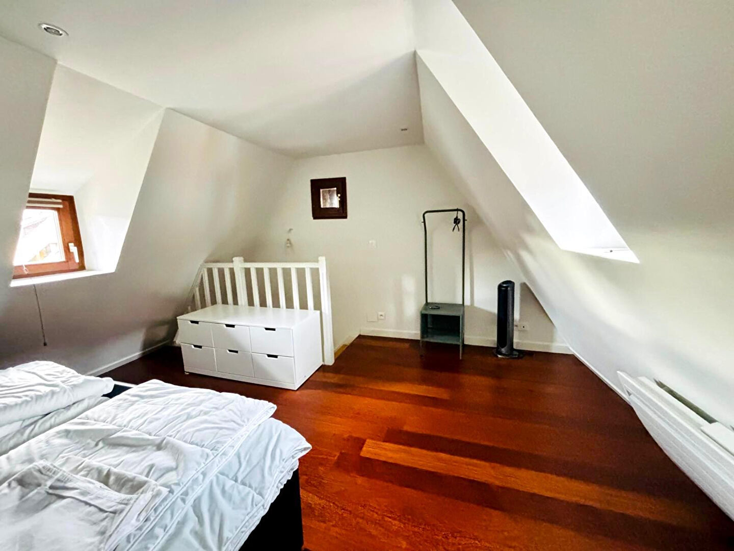 Au deuxième niveau, un espace bureau ouvert, idéal pour le télétravail ainsi qu'une chambre avec placard de rangement.