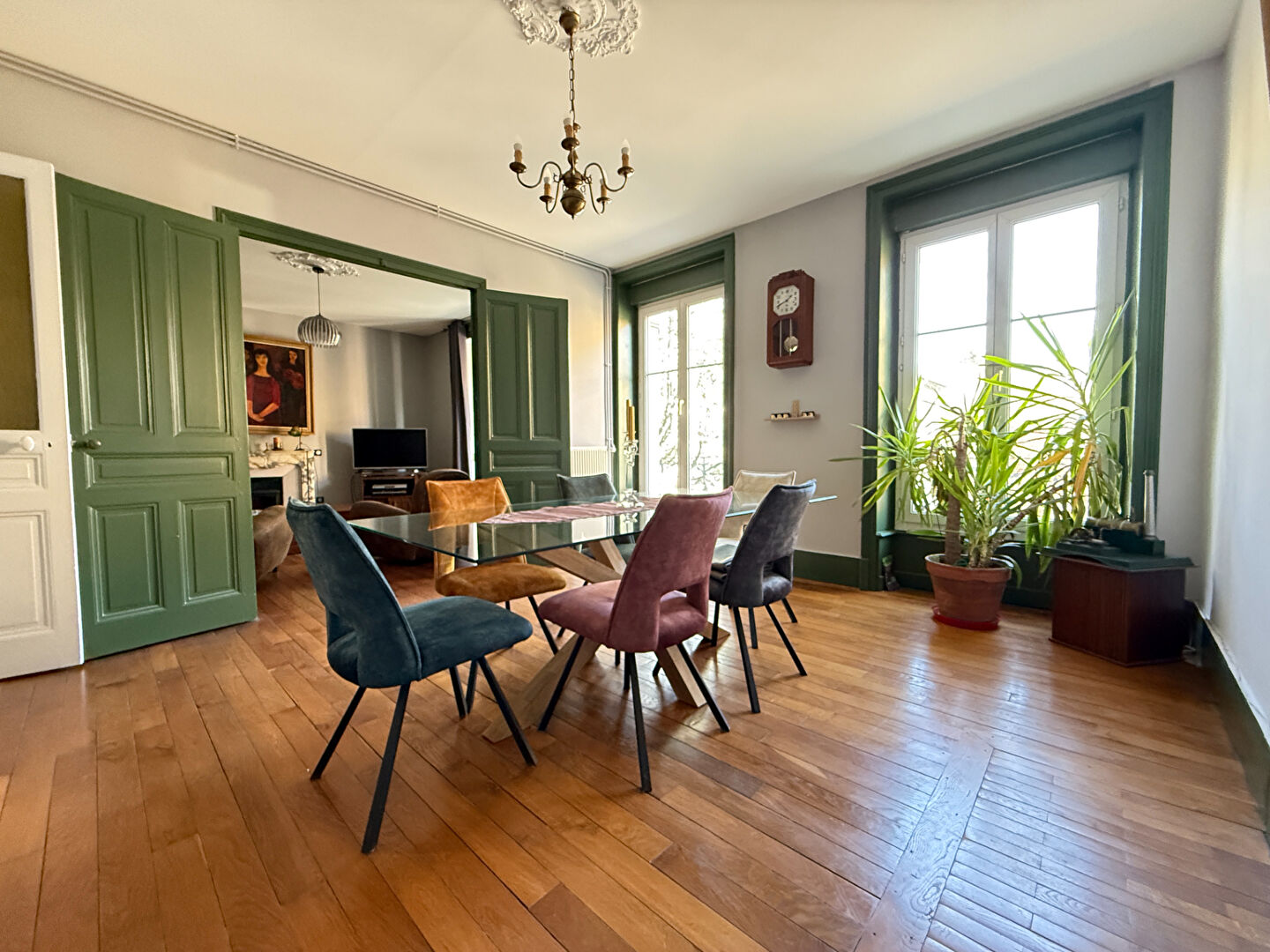 Traversant et seul à son étage, cet appartement très agréable saura vous séduire avec ses élégantes mosaïques au sol, ses planchers en bois massif et ses hauts plafonds dans les pièces de vie, son bow-window dans le salon, ses deux cheminées anciennes en marbre, ses chambres situées toutes deux au calme et donnant sur un jardin intérieur appartenant à la copropriété.