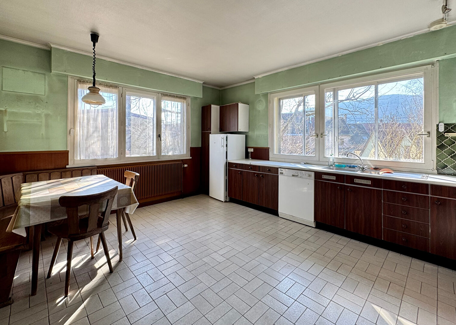 Le sous-sol est total et comprend un garage double (en longueur), une chaufferie (avec un WC et une douche), et deux grandes pièces chauffées.
