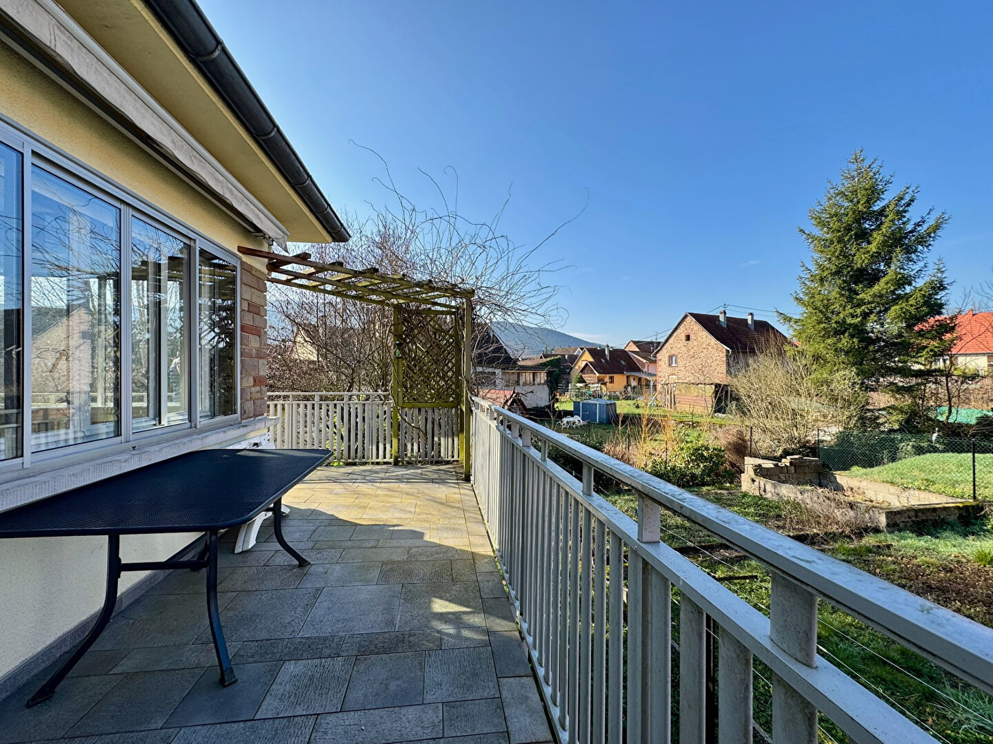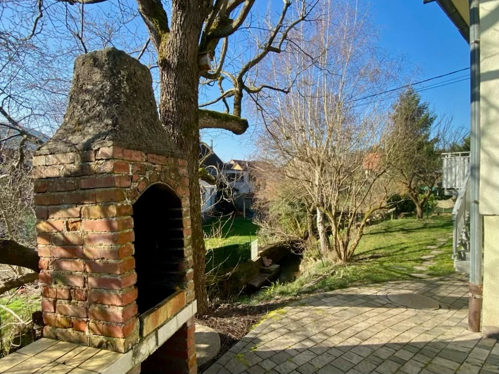 A l'extérieur : une terrasse coté Soultzbach et jardin, un carport à l'entrée du terrain, un grand jardin à l'arrière.