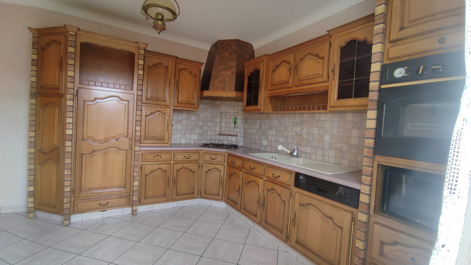 La cuisine signée LEROUX cuisiniste de LA ROCHE BERNARD, aménagée et équipée, offre un bel espace pour déjeuner et cuisiner .