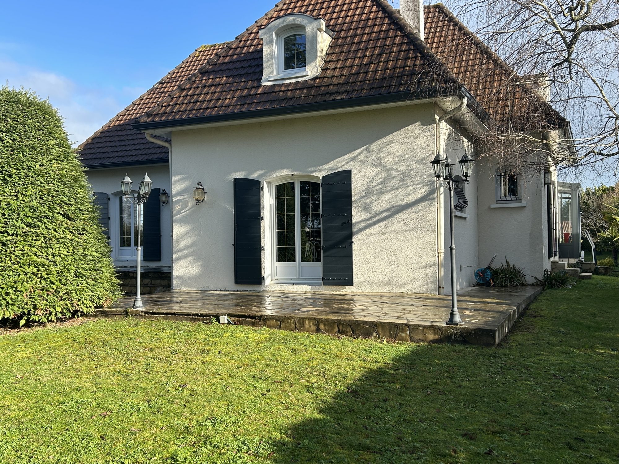 Profitez des beaux jours sur la terrasse ensoleillée, parfaite pour les repas en plein air ou les moments de détente avec la piscine