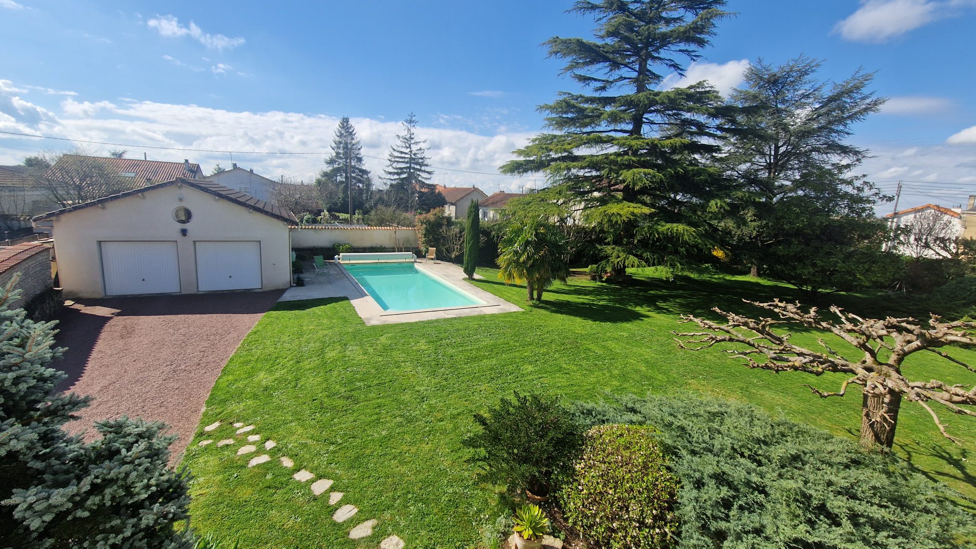 A l'extérieur se prolonge le charme de cette maison sur ses 2234m² de parc arboré et clos agrémenté d'une piscine 11x4.5m chauffée et sécurisée, d'un garage avec mezzanine de 60m², un abri bois, une pergola créée sur mesure.