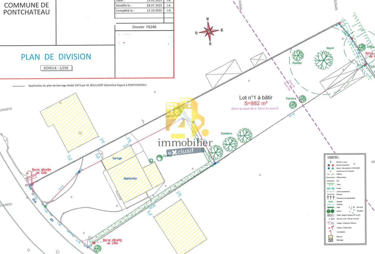 PONTCHATEAU En impasse proche RN 165 terrain à bâtir env. 953 m² vendu borné et viabilisé en TAE, dess...